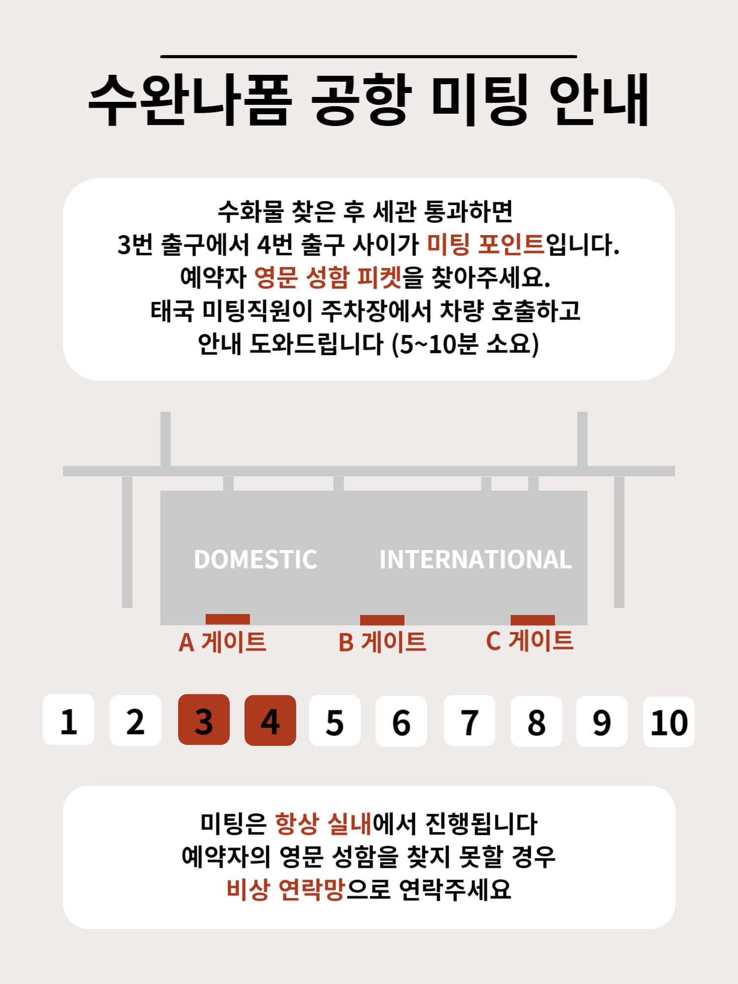 Q. 호텔에서 미팅할 경우 어디서 하나요? A. 미팅장소는 1층 로비입니다. 미팅 시간에 로비에 계시면 기사님이 고객님을 찾습니다.