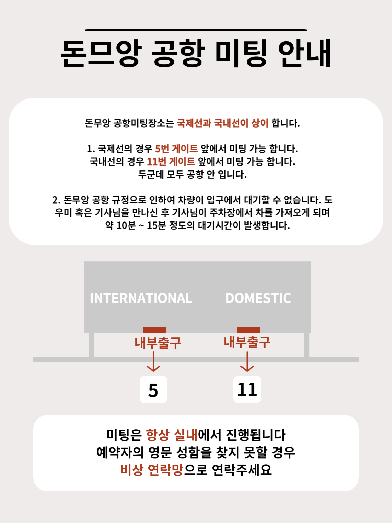 공항에서 일정이 있으신 경우 채널 상담을 통해 미팅 시간 예약 부탁드립니다