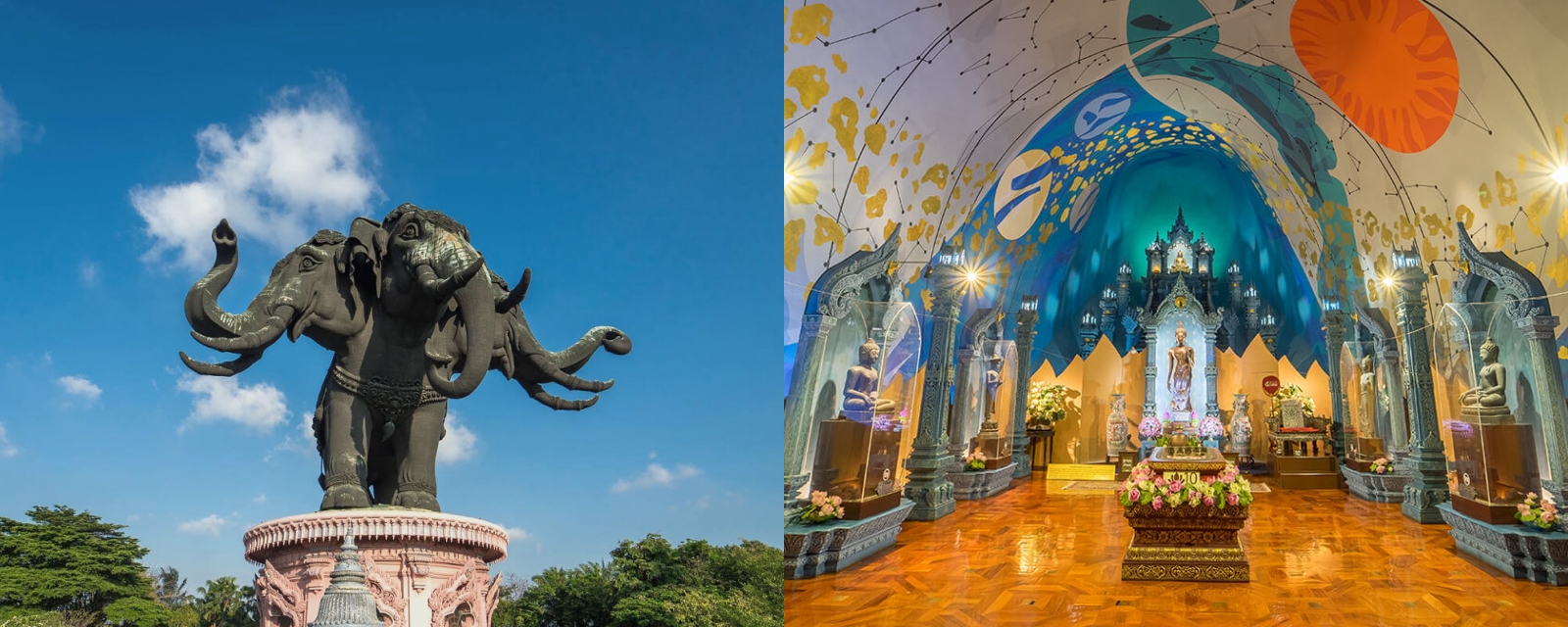 에라완 박물관(Erawan Museum)은 태국 방콕 근처 사뭇쁘라깐에 위치한 독특한 문화유산 박물관으로, 특히 거대한 세 개의 머리를 가진 코끼리 조각상으로 유명합니다. 이 박물관은 2003년에 개관했으며, 태국의 예술과 문화, 종교적 신념을 담은 유물과 장식품들이 전시되어 있습니다. 43.6미터 높이의 거대한 청동 코끼리 조각상이 박물관의 상징이자 주요 랜드마크입니다.