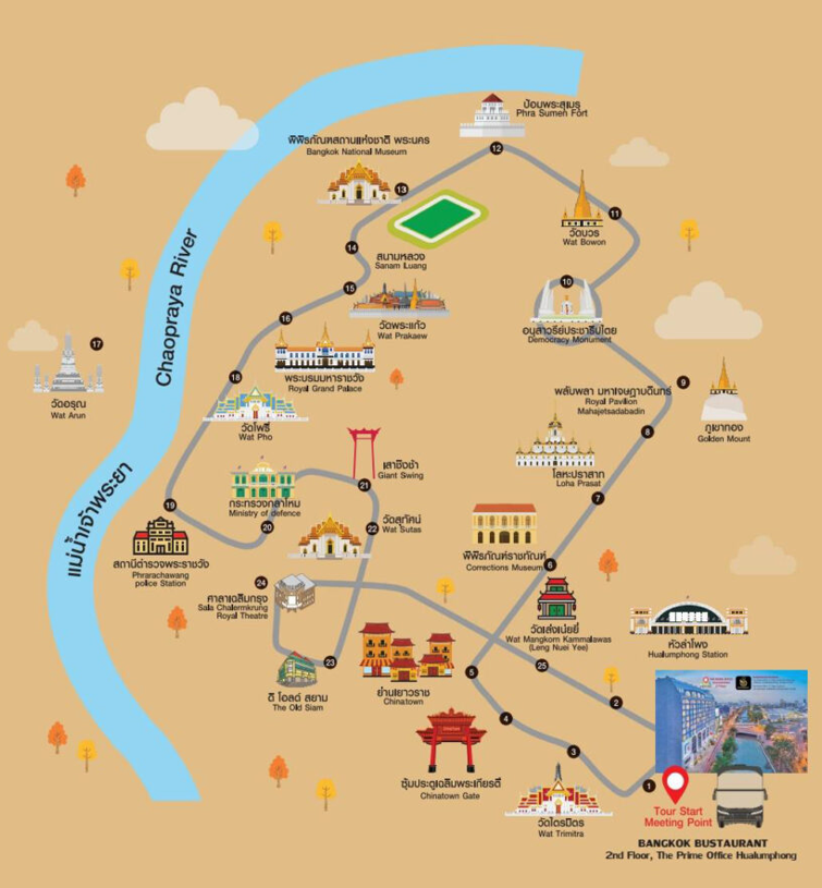 라타나코신 섬 일대를 중심으로 주요 관광지를 지나가며, 사진 포인트에서 정차하여 더욱 여유로운 사진 촬영이 가능합니다. (※ 정차는 사진 촬영용이며, 하차는 불가능합니다)